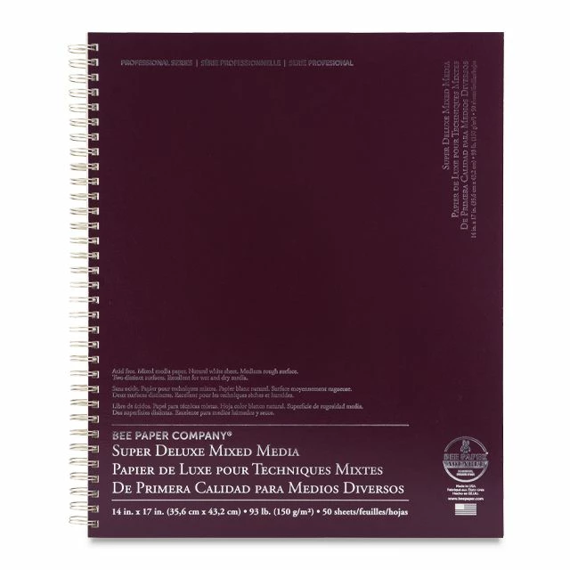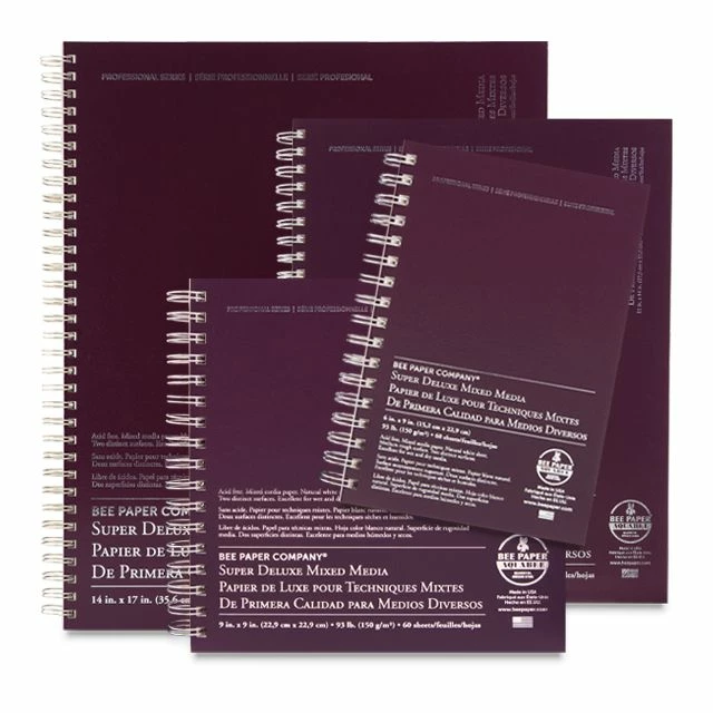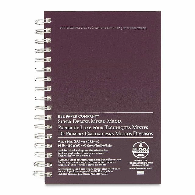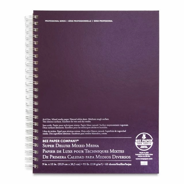 Bee Paper Company’s Professional Series Aquabee Super Deluxe Sketchbooks are the only sketchbook you’ll ever need! These spiral-bound books feature archival quality natural white drawing paper that’s pH neutral and double-sized to accept wet media. It’s also ideal for dry media like pencil, pen and ink, charcoal, pastel, and more.
