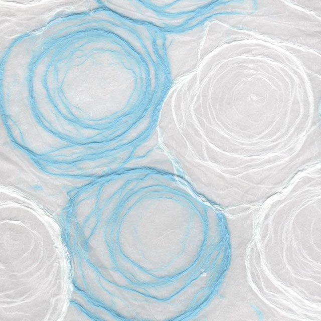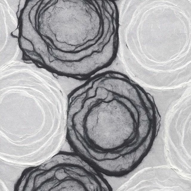 Black Ink Thai Whimzy Mulberry Paper is filled with funneling whirls of raised pulp to add texture and dimension to this remarkably thin, mulberry paper. The sheerness of the base paper makes it wonderful for use on art projects.