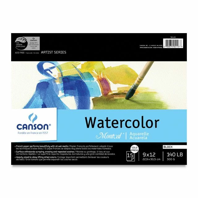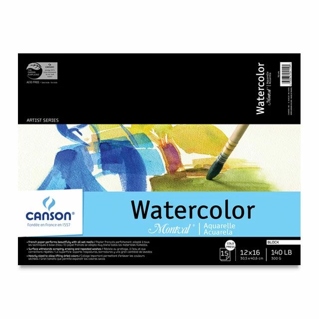 Canson Montval Watercolor Paper Blocks are easy to use and suitable for all watercolor techniques. The 140 lb. acid-free paper is wood pulp based, and is natural white with a cold press texture. External sizing offers great erasability for lifting and making corrections.