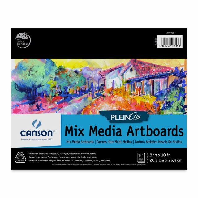 From the Plein Air line, Canson Plein Air Mixed Media Artboards are ready to see the world or just the inside of your studio. Ten rigid, textured artboards are held in place with glue along the spine and have a convenient heavyweight fold-over cover.