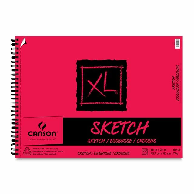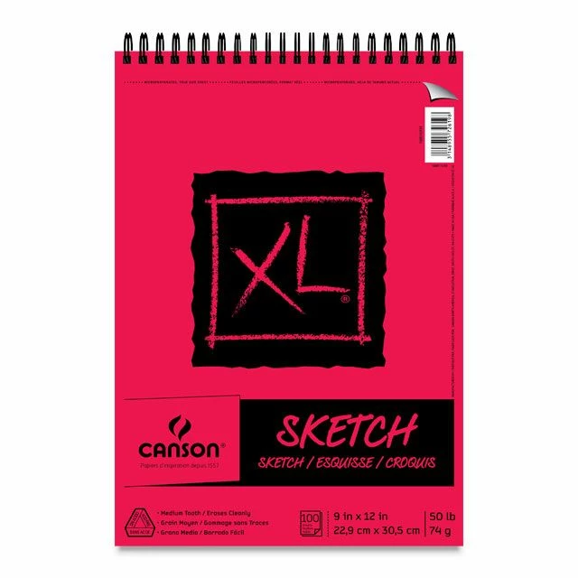 Sketch – Canson XL Sketch Pads feature a smooth natural white surface with a medium tooth designed for drawing media such as colored pencil, graphite, charcoal, and pen. The lightweight 50 lb. sketch paper is formulated for clean erasing and exceptional performance. These sketchbooks are ideal for preliminary work or to capture ideas. Sheets are micro-perforated, true size pages. The number of sheets and type of binding varies by size.