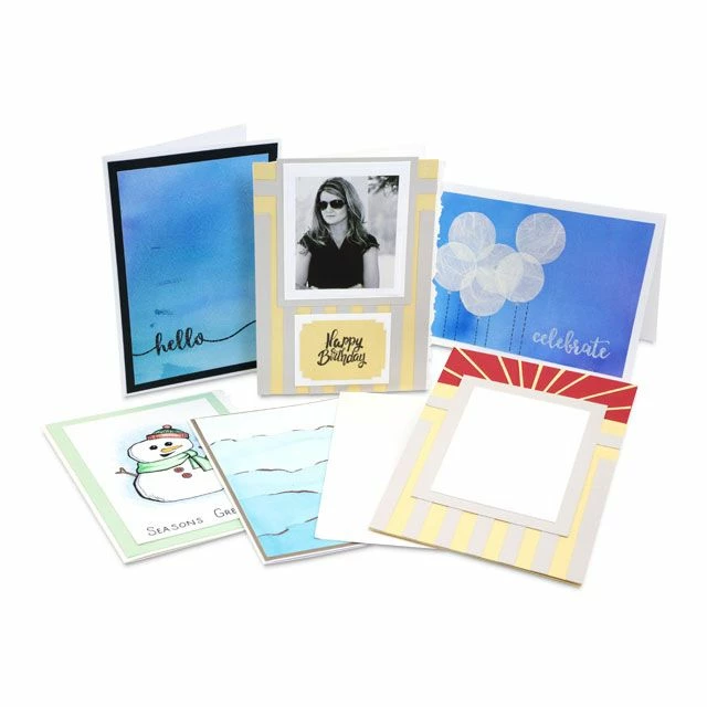 Cardstock – Use this thick cardstock as a mat-like border behind the artwork on your card to make your art pop, or use them as raw materials to create a collage for your handmade card. At 5″ x 7″ inches, you can even use the cardstock as a card by itself! Try customizing the size and shape by cutting the edges yourself. Available in packs of 10 in a variety of seasonal and neutral colors.