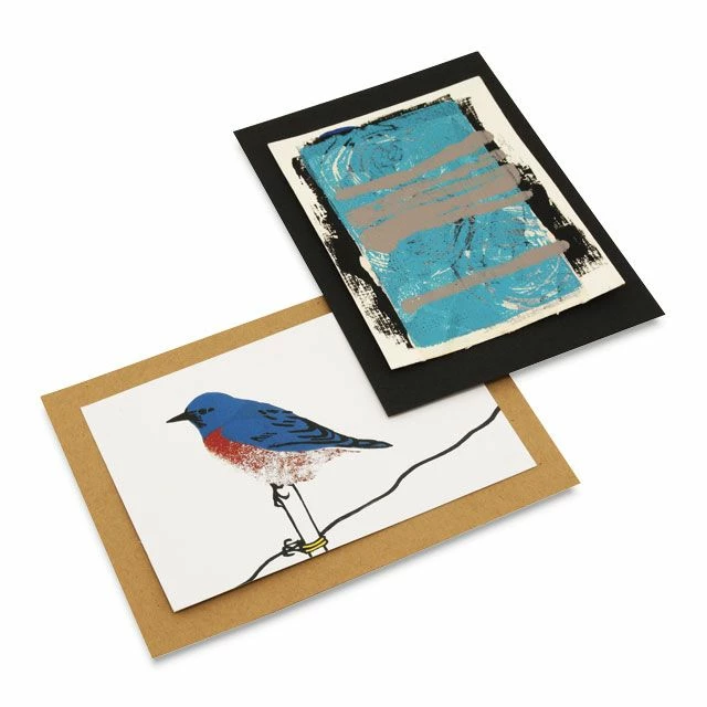 First choose a deckled or plain edge card style, then choose the style of 4″ x 6″ watercolor paper for your artwork or message, choose a colored cardstock to create a mat border behind your art, and use ATG adhesive strips to put it all together.