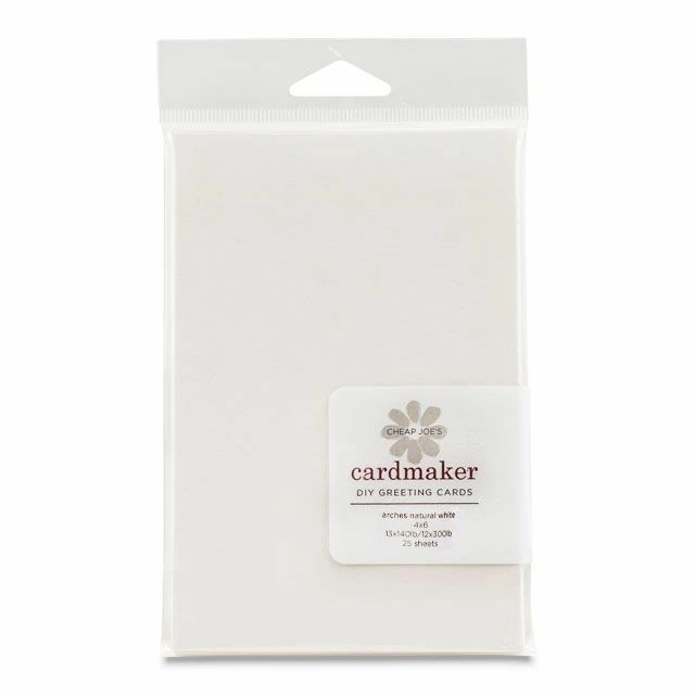 Arches Paper, 140 lb. & 300 lb. – These 4″ x 6″ watercolor paper sheets are Natural White Cold Press Arches in a mixed pack of both 140 lb. and 300 lb. weights. Sized to fit just right on a 5″ x 7″ card, these can also be used as stand alone postcards or tiny works of art. Available in packs of 25 (13 140 lb. and 12 300 lb.)