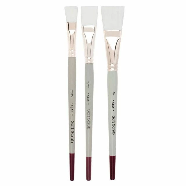Each Cheap Joe’s Soft Scrubber features white nylon, a nickel ferrule and a traditional watercolor handle.