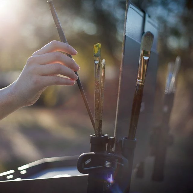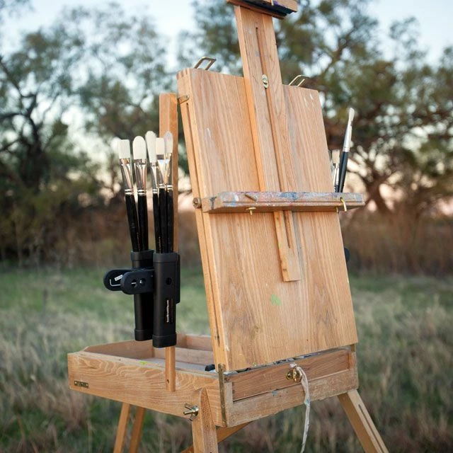 Eric Rhoads’ Easel Brush Clip is an ingenious way for artists to manage their brushes while painting, whether in the field or in the studio. Clip it onto the side of your easel, the side of your painting panel or drawing board, or onto your tripod leg. No matter where you use your easel brush clip, your brushes will be easy to find within view and reach. Plus, no more brushes rolling in your paint palette or falling in the dirt because you don’t have a good place to put them while you’re working.