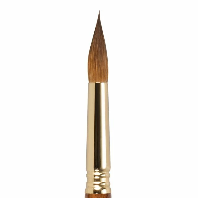 Each artisan handcrafted brush is attached to a lacquered wood handle with a triple crimped nickel-plated ferrule, and each one receives a special curing treatment to ensure that the brush tuft keeps its shape, increasing its spring and recovery. Considered the elite hair for watercolor brushes, Escoda selects only the best Kolinsky male sable hair for this brush. The hair comes from the Tajmyr region in very northern Siberia where it grows full and offers greater absorbency.