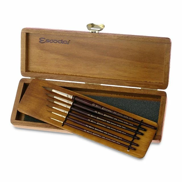 Series 1212 Pointed Round Brush Set – This set includes six pointed round Kolinsky-Tajmyr Sable watercolor brushes in sizes 0, 2, 4, 6, 8, and 10. Comes in a beautiful wooden box with clasp for storage, transport, and gifting.