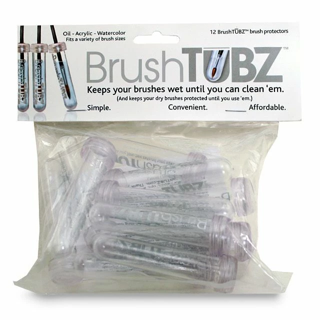 Guerrilla Painter Brush TUBZ keep your brushes wet until you can properly clean them. Also great for protecting your dry brushes until you need them. Brush TUBZ may be used with oils, acrylics and watercolors and will accommodate a variety of brush sizes.