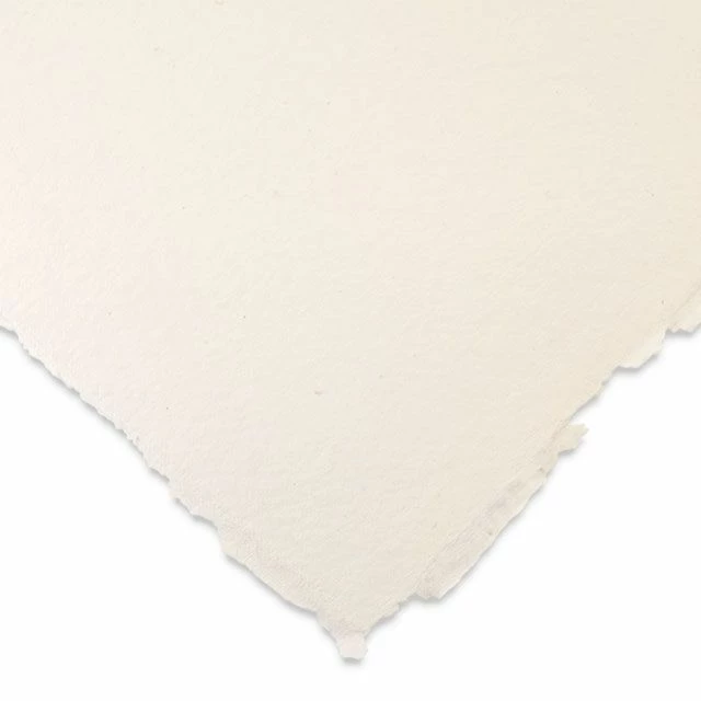 This 95 lb. paper is acid-free and ivory white with 4 deckled edges. No two sheets are alike; every paper has its own characteristics and that’s the uniqueness of handmade paper. Even though the paper is considered hot-press, it does have a little of that unique texture that speaks to its handmade qualities.