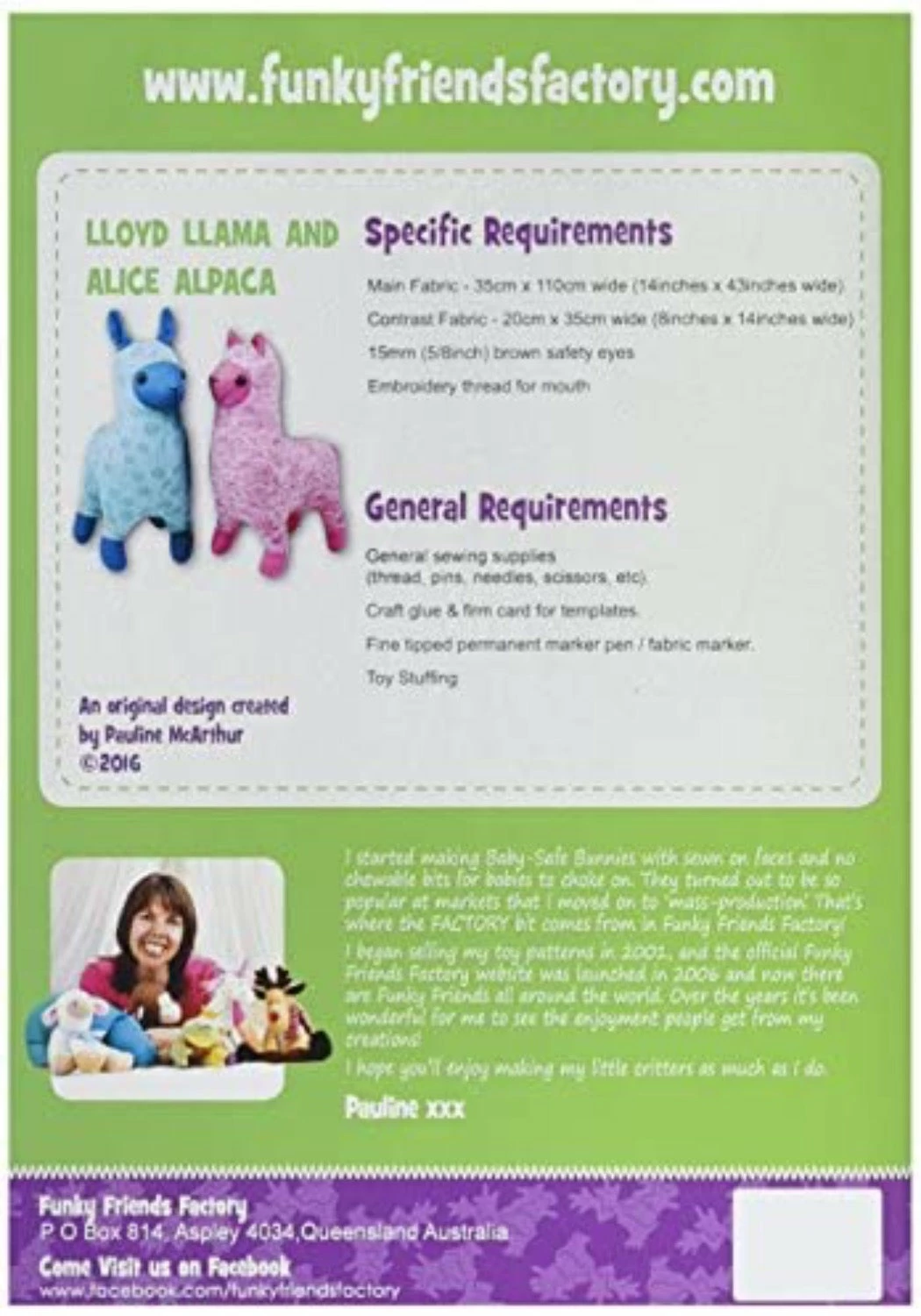 Lloyd the LAMA and Alice ALPACA are cute cousin camelids. Llama’s are a little larger, with a longer face and longer ears but they’re both ugly-cute! These guys are suitable for an intermediate or adventurous beginner sewist.