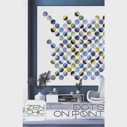 Asymmetrically arranged, raw-edge appliqued dots pop against a bright white background in this eye-catching, charm pack-friendly lap-size quilt.