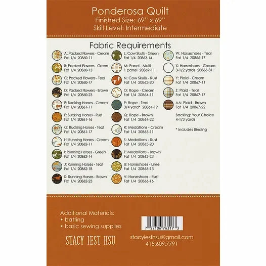 Take a trip to the wild west with the Ponderosa Quilt Pattern. Piece a panel and fat quarters in Ponderosa by Stacy Iest Hsu for Moda Fabrics for a homestead worthy project any cowgirl or cowboy will be proud to have.