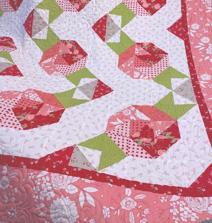 Posy Pops is a bright, happy quilt made to draw the eye! The recommended collection for this pattern is Beautiful Day by Corey Yoder, a Moda collection. You’ll love this cute floral quilt!