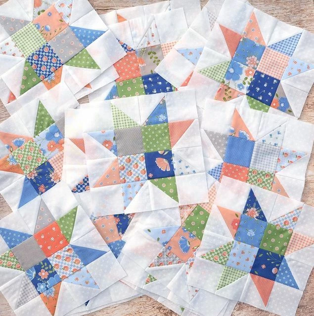 A fat eighth bundle friendly pattern featuring the collection Peachy Keen by Corey Yoder of Coriander Quilts.