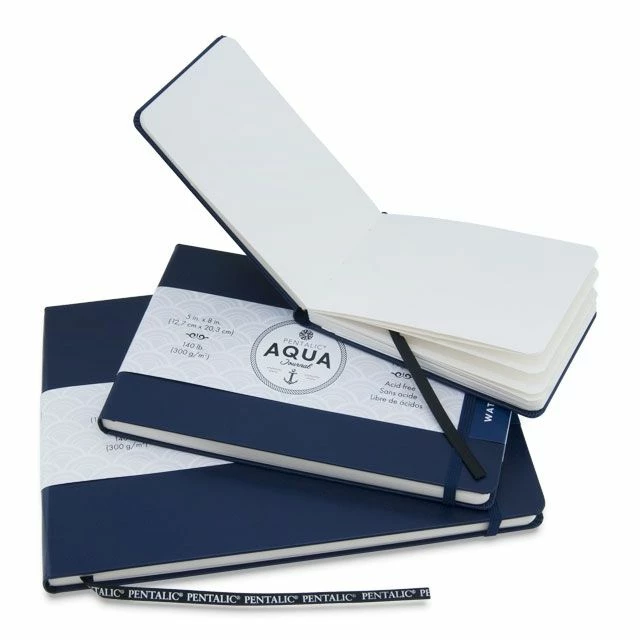 Indulge your inspiration wherever it occurs with the Pentalic Aqua Journal. Each sketchbook contains 48 pages of 140 lb (300 gsm.) European-milled cold press paper that’s ideal for watercolor painting. The paper resists warping and bleeding under heavy washes, and can stand up to scrubbing. The stitched binding lays flat to create a two-page spread that can accommodate panoramic scenes. Bound on the short side in a landscape format.