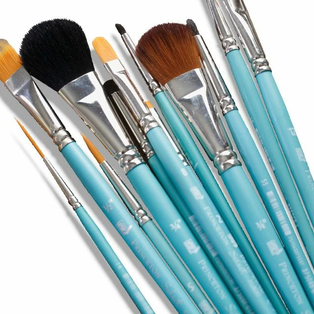 Princeton Select Series 3750 offers a vast line of distinct shapes and sizes created for oil, acrylic and watercolor artists. Now you can explore traditional and avant-garde techniques on nearly any surface. Each brush features satin-finish jewel-tone blue handles and silver ferrules—as beautiful to look at as they are to paint with.