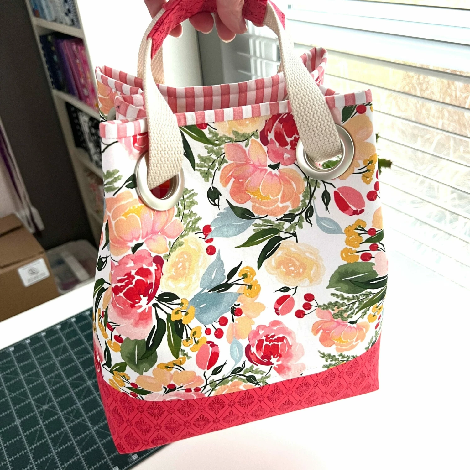 Customizable pockets around the inside plus one inside zipper pocket. There are so many uses for the Pucker-Up Project Tote. Keep everything in one place for when you are at home or on the go!