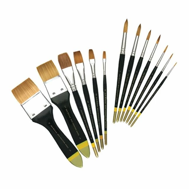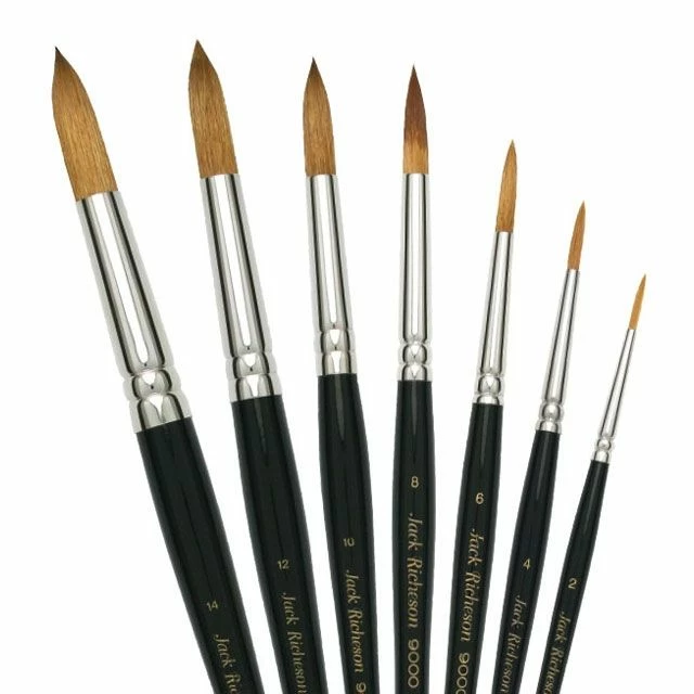 Jack Richeson’s Series 9000 Round and 9010 Flat Watercolor Brushes are made of a superb mixture of varying thicknesses of synthetic fibers. They will hold plenty of watercolor, gouache, casein or acrylic, and release paint smoothly, giving you perfect control. They’re the ideal tool for the professional yet a great price for the student.