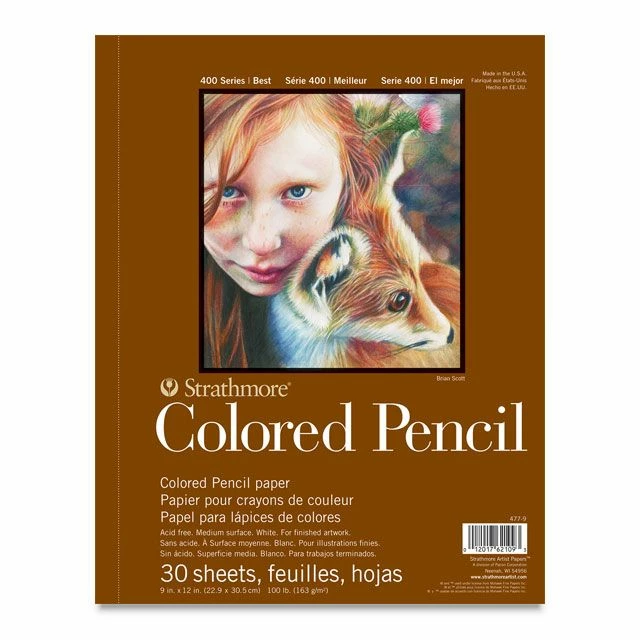 Strathmore 400 Series Colored Pencil Pads provides a clean white, toothy surface that is ideal for a variety of colored pencil techniques. Smooth, even coverage can be achieved, and the durable surface stands up to repeated erasures and reworking. The heavyweight combined with the vellum surface allows for the application of multiple layers.