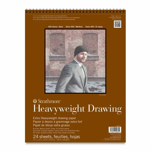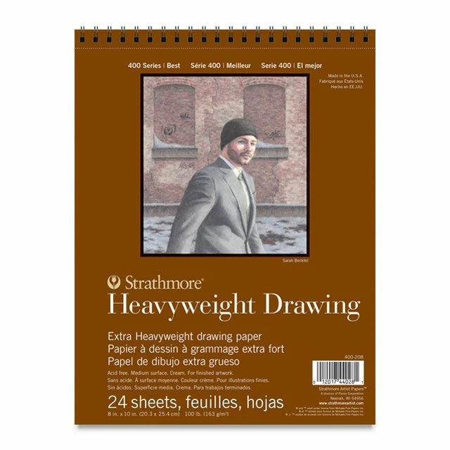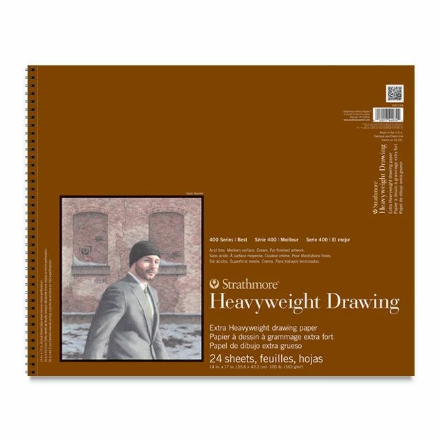 Strathmore 400 Series Heavyweight Drawing Pads offer a medium surface with slightly more texture than the 80 lb. 400 Series Drawing pads. These pads have a surface that is durable enough to stand up to repeated erasing and reworking.