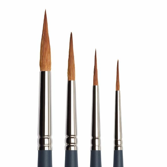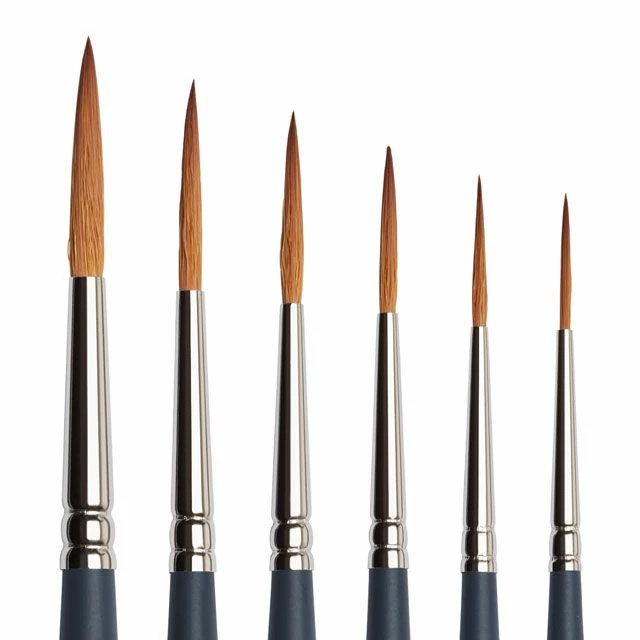 Pointed Round – An adaptation of the round, the extra fine tapered point aids accuracy and fine detail work, while the belly holds plenty of color.